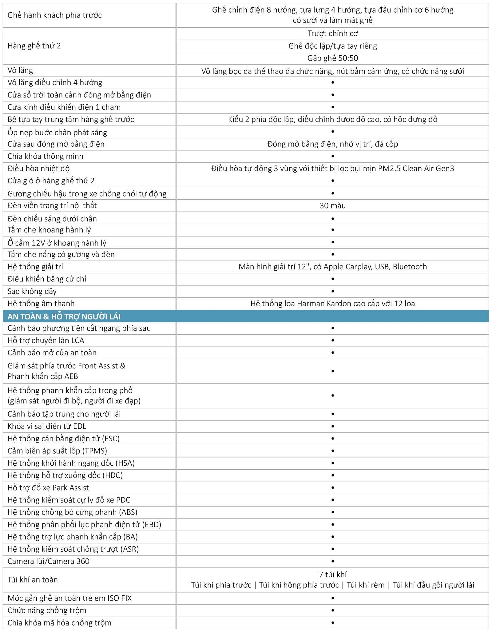 Hệ thống ghế cao cấp: Chức năng làm mát và sưởi ghế trước, chỉnh điện 8 hướng, tựa đầu chỉnh 6 hướng, chức năng bơm hơi tựa lưng 4 hướng, chức năng nhớ vị trí ghế người lái. Hàng ghế thứ 2 độc lập, có tựa tay riêng, ghế trượt lên xuống, có lối đi riêng vào hàng ghế thứ 3.