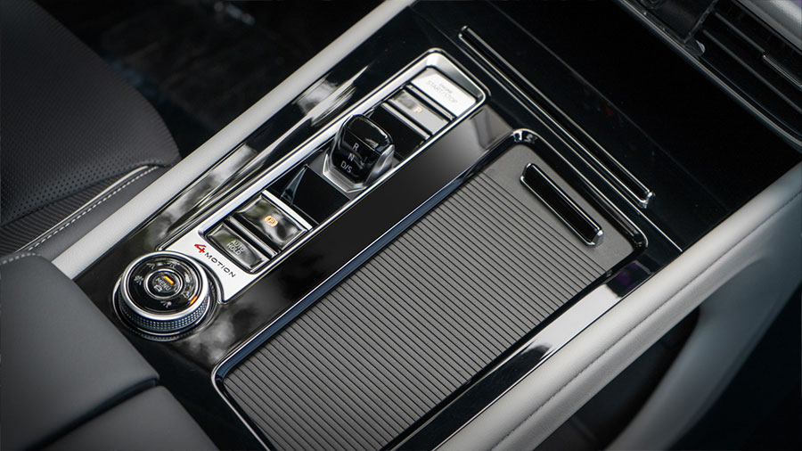 Công tắc chuyển số điện tử: Khu vực điều khiển trung tâm thiết kế lớn với công tắc chuyển số điện tử nhỏ gọn và sang trọng, nút khởi động start/stop thiết kế thuận tiện trong tầm tay.