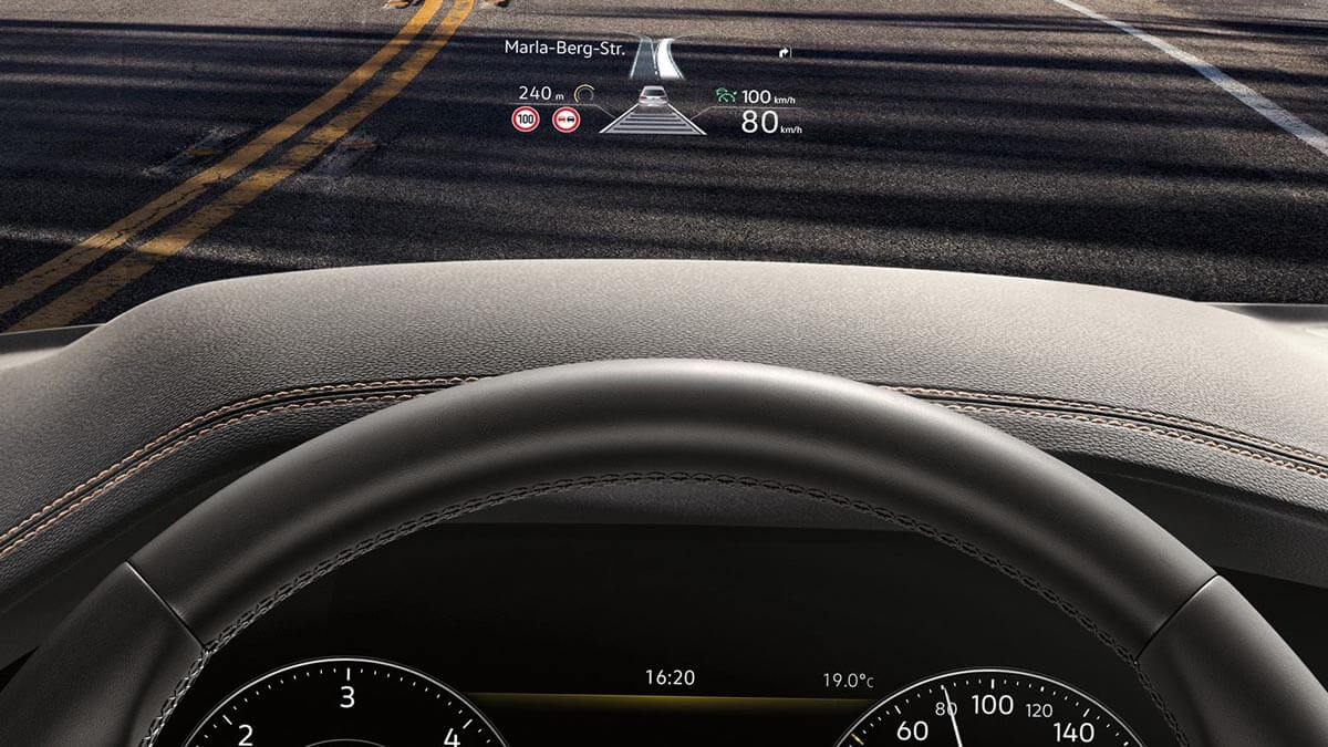 Màn hình hiển thị thông tin trên kính lái Head-up-Display : Giữ cho tầm nhìn của bạn luôn ở phía trước Màn hình hiển thị thông tin sử dụng kính chắn gió làm bề mặt chiếu để hiển thị các thông tin quan trọng: